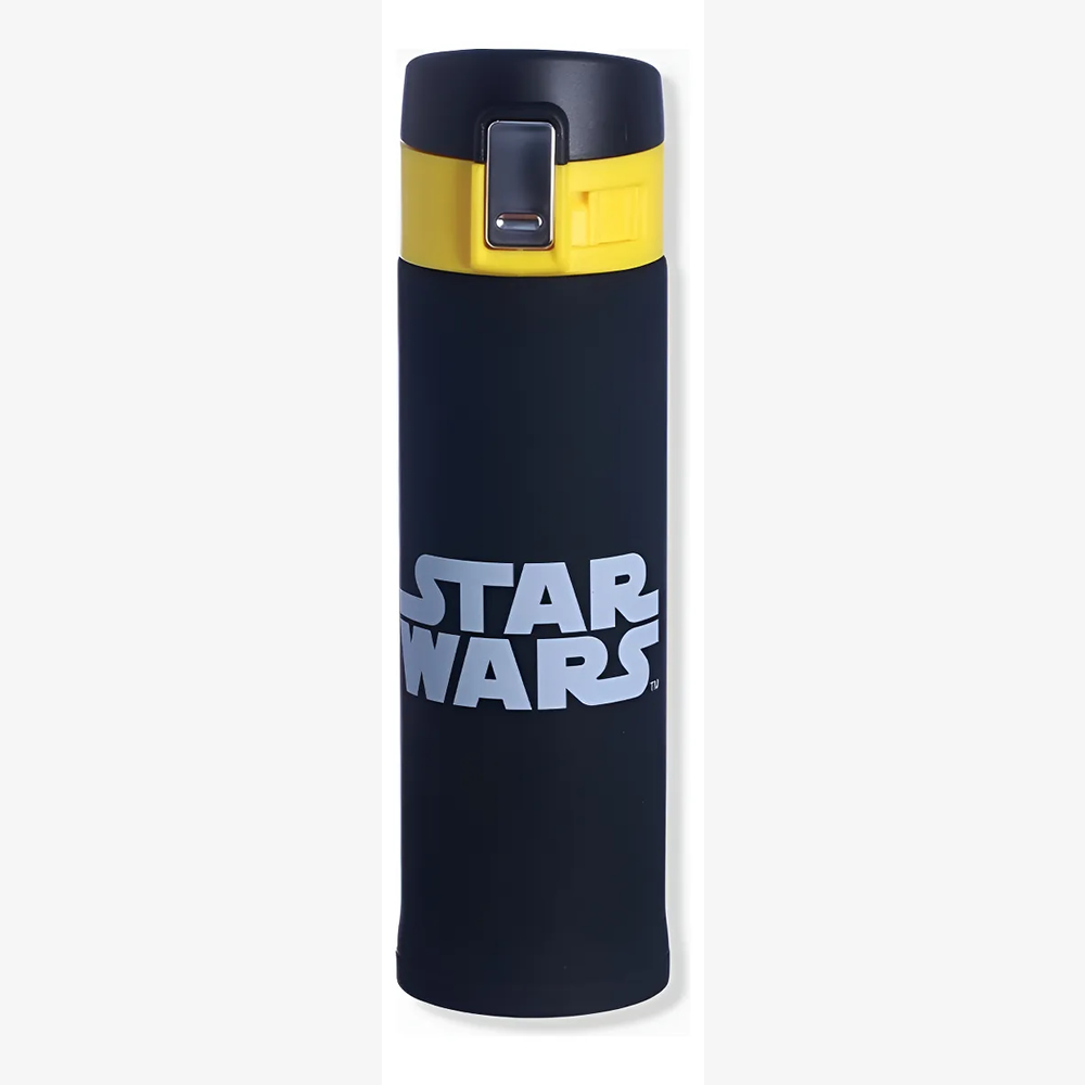 O produto é importado, feito em aço inoxidável, possui detalhes incríveis que vão fazer você se apaixonar! Ajuda a manter a temperatura da sua bebida por até 6 horas, com tampa rosqueável e uma trava perfeita para evitar vazamentos! Além de prática, cabe em qualquer cantinho da sua mochila ou bolsa! Com 450ml de capacidade, te acompanha durante toda sua rotina. Não importa se você é Jedi ou não, essa garrafa te acompanha em todas as suas aventuras!