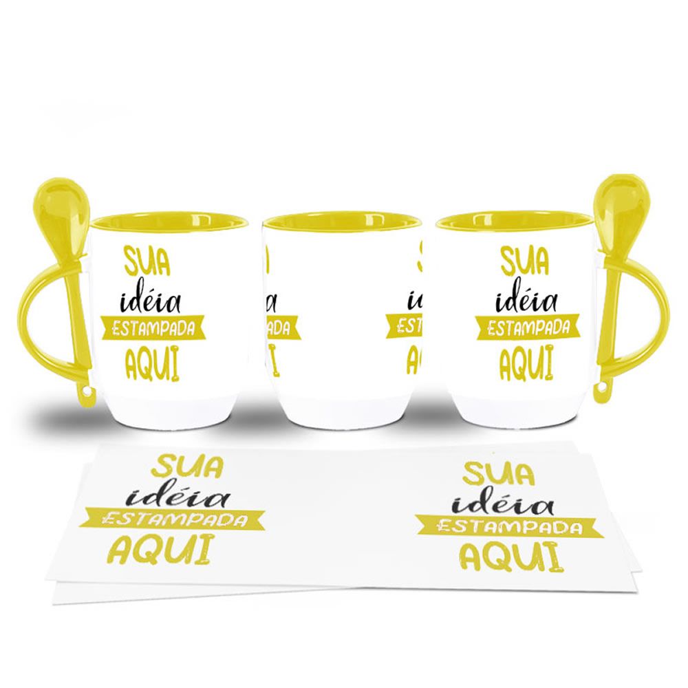 Caneca Com Colher Aamarela Personalizada